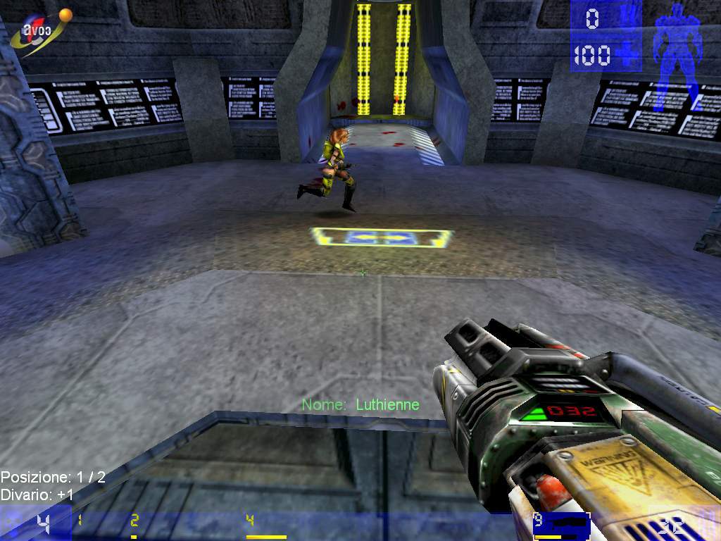 Quake III Arena, che spero possiate vedere recensito a giorni su AVOC...), è quella che il gioco è stato realizzato appositamente per il multiplayer e, anche se il gioco possiede una modalità per giocatore singolo, che vi dà la possibilità di giocare contro bots molto intelligenti, in modo da allenarvi alle partite con avversari o amici, il massimo divertimento si raggiunge proprio in multiplayer. Stranamente, pur essendo un gioco in cui la trama non servirebbe a nulla (visto che ormai anche il genere degli shooter 3D si è evoluto...), esiste invece una storia che da sfondo al tutto e che giustifica le vostre carneficine all'interno dei livelli realizzati dai programmatori. In un futuro piuttosto lontano, la solita mega corporazione che comanda su tutto e su tutti, ha deciso di indire un torneo, che veda scontrarsi gli uomini più forti del pianeta, a colpi di arma da fuoco e che possa decretare così, dopo lunghe sfide, il campione della manifestazione (se così possiamo definirla...). Tutto questo è raccontato da una breve introduzione realizzata con l'engine 3D del gioco che, dopo essere terminata, vi fa passare immediatamente al menu principale. L'interfaccia del menu (e poi di tutta la parte "gestionale" del gioco, chiaramente...) ricorda molto quella di un qualsiasi applicativo per Windows. Cliccando su alcune voci, poi, saranno aperte varie finestre, in cui attraverso bottoni e listbox varie, avrete poi la possibilità di iniziare a giocare. Inizierei quindi con il descrivere le varie modalità di gioco presenti. Sul Deathmatch non starei a sindacare più di tanto, visto che si tratta del solito "tutti contro tutti" presente all'interno di ogni shooter 3D che si rispetti. Parliamo allora della divertente modalità Assalto, in cui, in squadre da tre o quattro giocatori, una contro l'altra, dovrete, come dice la parola stessa, difendere o assaltare una determinata struttura. Nei livelli creati per questa modalità, infatti, abbiamo castelli, torri, navi, fortezze, treni in corsa, in cui il computer deciderà, tutte le volte che vorrete giocare (naturalmente in singolo, in multiplayer le cose cambiano...), se dovrete effettuare voi l'assalto, oppure aspettare che i nemici facciano la loro comparsa e difendere così la struttura nella quale vi trovate. La modalità Dominio ricorda moltissimo l'ormai classico Capture the Flag: sempre divisi in due squadre, avrete alcuni punti di controllo all'interno del livello, la cui conquista farà aumentare il punteggio della vostra squadra; naturalmente, vince chi, alla fine del tempo messo a disposizione, ha ottenuto più punti e si è fatto uccidere di meno. Il Capture the Flag richiede una spiegazione molto breve: si tratta, infatti, di una variante del classico Rubabandiera, giocabile sempre a squadre, in cui il vostro compito è quello di passare da una parte all'altra del livello, rubando la bandiera avversaria, naturalmente evitando di farsi uccidere e ottenendo così, alla fine, un punto. La Sfida, invece, rappresenta un Deathmatch in cui non esistono regole e in cui vi dovrete fronteggiare con gli sfidanti più forti presenti nel gioco, in ambientazioni definibili come estreme. Esistono poi anche altre due modalità: il Deathmatch a Squadre possiede le stesse regole del Deathmatch, ma vi dà la possibilità di giocare in team di quattro giocatori ciascuno, fino ad un massimo di sedici giocatori in totale (quattro squadre, quindi...); la modalità Ultimo Uomo Rimasto (o, all'inglese, Last Man Standing...) è molto simile al Deathmatch, ma avete un numero limite di vite e vince, naturalmente, chi non le perderà tutte e riuscirà, invece, a farle perdere agli altri. Come vedete, quindi, i programmatori della Epic ci hanno messo a disposizione un gran numero di modalità, che rendono la longevità del gioco molto elevata, soprattutto se giocherete in multiplayer. Per ognuna di queste modalità, poi, sono disponibili un gran numero di mappe, realizzate appositamente per un determinato tipo di gioco, che vi daranno la possibilità di non annoiarvi mai, magari vedendo sempre le stesse cose. Inutile dire che su Internet si sono già rese disponibili molte mappe aggiuntive, che vi basterà inserire all'interno dell'apposita directory nel gioco, se vorrete giocarci. I primi cinque stili di gioco che vi ho descritto fanno anche parte della modalità Single Player, nella quale vi potrete sfidare contro bots dalla AI piuttosto elevata, per un totale di circa quaranta livelli, otto per ogni tipo di gioco. Il mio consiglio, comunque, è di partire subito ad un livello di difficoltà che sia almeno quello Medio, visto che ai livelli di difficoltà inferiori, risulta veramente facile vincere senza alcun problema. I bots però, hanno anche la capacità di imparare, quindi di capire il modo in cui giocate. Sono intelligenti e questo, nei livelli più avanzati non sarà una cosa che va a vostro favore, credetemi. Per quello che riguarda il gioco in singolo, avrete poi la possibilità di fare pratica in una qualunque delle modalità presenti e in ognuno dei livelli disponibili. Per ognuna di queste partite, potrete poi anche decidere il numero dei bots che vorrete affrontare, la loro intelligenza e una serie di altri parametri che sceglierete al momento di giocare. Un aspetto molto importante è costituito dai cosiddetti Mutatori che, applicati alle varie modalità (sono diversi per ognuna di queste...), modificano le regole, costituendo quindi una variante alla modalità tradizionale. Per fare un esempio, potrei ricordarvi l'Instagib, in cui al primo colpo che riceverete sarete uccisi, oppure il Fatboy, in cui, se ucciderete, diventerete sempre più grassi mentre se, invece, sarete uccisi molto spesso, la vostra corporatura sarà sempre più magra.