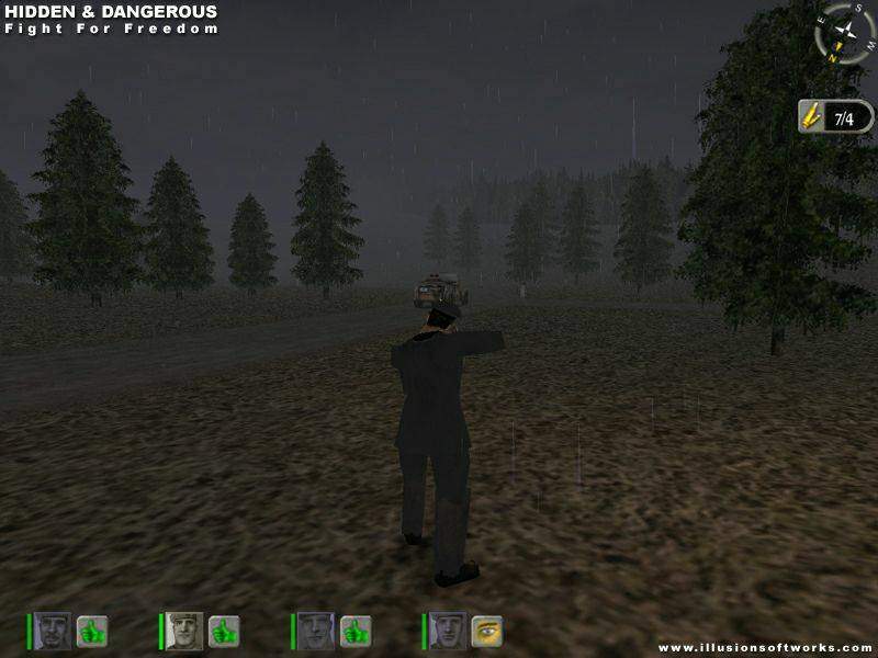 Hidden & Dangerous posso immediatamente far notare come si tratti di un titolo complesso, profondo, da giocare attentamente. Una buona mira non vi basterà a far piazza pulita nella base militare nemica, poiché saranno molte le componenti da tenere strettamente sott'occhio e che limiteranno al minimo le azioni a viso aperto; più spesso infatti dovrete avanzare con circospezione e valutare attentamente se e quando intervenire. Il contesto storico in cui vi troverete immersi è lo stesso del precedente episodio, ovvero il periodo della Seconda Guerra Mondiale. Inizierete le vostre avventure a partire dal 1944 in Polonia, quando dovrete cercare di sottrarre ai tedeschi un aereo che dovrà essere analizzato dagli alleati. Di qui seguiranno altre campagne che saranno organizzate in due o più missioni variamente articolate. Quello che colpisce subito è la cura verso il dettaglio per avere una rappresentazione il più possibile credibile. Mi riferisco alla documentazione che accompagnerà il briefing di ogni missione e alla descrizione ampiamente esaustiva di ogni soldato del vostro corpo militare. Ogni missione sarà poi accompagnata da un breve filmato realizzato con il motore grafico del gioco oltre ad una panoramica dell'intera missione che vi illustrerà tutti i dettagli e i percorsi migliori. Le missioni sono sempre ben congegnate e vi vedranno impegnati negli obiettivi più vari: liberare un prigioniero, rubare importanti documenti o nuove tecnologie, assassinare esponenti del potere nemico e quant'altro possa competere ad un corpo speciale dell'esercito. I vari compiti andranno affrontati con un determinato numero di soldati, tipicamente quattro, scelti da una rosa di sedici, costituita dai migliori uomini alleati. Per ognuno è stato costruito un background con tanto di date, studi e imprese portate a termine, ed ognuno avrà differenti caratteristiche che lo renderà più o meno portato verso un tipo di missione. Mira, Reazione, Discrezione, Forza e Resistenza saranno i parametri che andranno tenuti in considerazione nella selezione che precede l'avvio dell'azione militare, così come le armi a disposizione verranno determinate e scelte nello stesso momento. Il parco "bellico" è ampio e ben assortito e dettagliato: la classica pistola, due tipi di fucile, quattro di mitragliatrici, dinamite, mine da carro e da uomo, granate di tre tipi, un binocolo e macchina fotografica andranno scelte in base al lavoro da portare a termine. Ognuna poi è rappresentata in modo da non sfigurare con la più agguerrita enciclopedia di armi, con una attenta riproduzione grafica e descrizione testuale. La pianificazione che precede la missione vera e propria sarà un momento cruciale per ottenere il massimo dai mezzi messivi a disposizione, senza contare che le armi avranno delle munizioni limitate in modo da costringervi a gestire accuratamente le risorse.