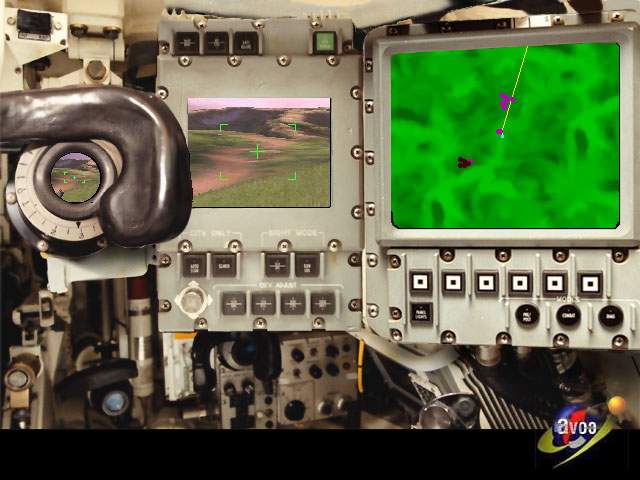 appiccicato lì per caso. Tutti i comandi rispondono come dovrebbero, e si sentono pure le varie comunicazioni tra i membri del nostro carro, facendo delle operazioni che uniscono lo sforzo di diverse persone a bordo. Il fondale e tutti gli oggetti in esso, poi partecipano attivamente al cambiamento dello scenario. Il cielo non è immobile, ma cambia passando da un blu chiaro cosparso di bianche nubi, ad un grigio di una giornata uggiosa fino a scurirsi in un bellissimo tramonto infuocato e tramutarsi in una cupa notte nera. Il terreno risulta vario, mai uguale con una scelta cromatica valida a seconda delle zone e dello scenario, ed un mare di nascondigli per nemici meccanizzati o a piedi; una vera e propria trappola. Per terra si possono notare le tracce lasciate dai cingolati o dai trasporti su gomma riuscendo anche a stabilire dove sia la minaccia; insomma anche il terreno è attivo all'interno della simulazione. Gli oggetti dello scenario non sembrano per niente appiccicati lì per caso e tutti possiedono una elevata intelligenza: si muovono, si difendono e rispondono al fuoco chiamando in supporto altre truppe. Le truppe a terra sono fastidiose come le zanzare ed è difficile stirarle, mentre per ciò che riguarda i carri nemici alcuni fanno da esca, mentre altri tentano l'aggiramento per coglierci alle spalle. Insomma riuscire a spuntarla non è semplice. Le esplosioni sono a livello di fotorealismo con pezzi che volano da tutte le parti con conseguente colonna di fumo. Quando parte il colpo si vede la percussione ed il fumo della canna principale, tutto veramente OK. I colpi dei mitragliatori sono di colore giallo per avere la possibilità di vedere la direzione dei colpi. Comunque anche i nemici possiedono degli aiuti particolari: noi possiamo chiamare come supporto aereo degli A-10 che volteggiano sopra di noi come dei condor ed attaccano tutti i nemici nel nostro raggio d'azione, oppure chiamare l'artiglieria, facendo però in fretta a liberare l'area perché come tutti i film di guerra insegnano che la loro imprecisione è nota, perciò preferiscono radere al suolo una zona più o meno ampia.