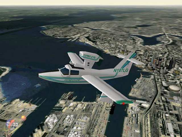 Questi sono i principali aerei di FU3; per gli inguaribili militari la Looking Glass ha inserito anche il P-51D Mustang ed il Fokker DR-1 del famosissimo Barone Rosso (in preparazione al prossimo Flight Combat, in uscita nei primi mesi del 2000...). OK, allora entriamo dentro al simulatore scegliendo il tecnologicissimo Beechjet 400A. Le visuali disponibili sono ben dieci, compresa la classica cabina virtuale, che vi permette di simulare la rotazione della testa. Il jet anche quando è fermo sulla pista, risulta molto convincente e non si ha il classico effetto tale che fa sembrare l'aereo appiccicato sul fondale-fotografia. Anche da diverse angolazioni l'aereo non presenta imperfezioni o difetti, solo la scelta cromatica è un pochettino discutibile, infatti i colori sono piatti e non dà l'effetto tridimensionale che ci si aspetterebbe. Una volta accese le luci di navigazione la figura complessiva migliora sensibilmente. L'interno è molto curato e preciso, solo che la scelta di colori troppo brillanti fa sembrare la console, rispetto all'ambiente fuori, falsa e non molto credibile. Se si usa il Cessna C-172 questo effetto si accentua maggiormente, perché il cockpit è una riga di traverso per lo schermo con sotto gli strumenti analogici. Graficamente il tondo degli strumenti risulta ben fatto e leggibile, ed anche meccanicamente funzionano come dovrebbero nella realtà, ma purtroppo guardando il complesso scade. Usando la cabina virtuale si nota un leggero sfocamento, cioè la grafica dell'interno dell'aeromobile si mette al livello di quella esterna con un grado di dettaglio leggermente inferiore dando una omogeneità prima negata al complesso. In questo campo