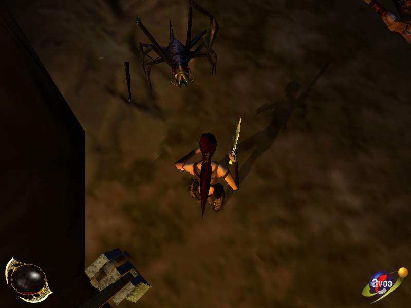 Tempo: storico, fuori dal tempo. Ora: imprecisata, ma notte fonda, scura, immobile e silenziosa. Camminiamo io ed il mio fratellino insieme e mentre mi guardo i piedi vedo... Due boc..e enormi; oddio il mio personaggio, cioè quello principale è una donna. All'improvviso, alle spalle e dal davanti, mi appaiono quattro esseri, due per parte, mostruosi e molto corpulenti. Sguaino la mia spada corta e mi metto in posizione di difesa. Due tra i più piccoli di loro mi si avventano contro bramosi del mio sangue e quello del mio fratellino più caro. Arrivati nel raggio d'azione della mia spada corta mi esibisco nel taglio gemellare della loro giugulare e cascano per terra senza vita mentre io ringrazio il mio istruttore (grazie Conan..., non c'entra niente...). Uno degli esseri grossi urla un ordine in una lingua incomprensibile alle mie orecchie e tutto d'un tratto mi si gettano tutti addosso in carica. Sopraffatta dal disavanzo numerico mi regalano una clavata tra capo e collo che mi procura una leggera mancanza di sensi. Al mio risveglio non v'è traccia del mio fratellino; segno che l'hanno preso con loro. Mi dirigo verso il villaggio; in lontananza colonne di fumo si elevano in direzione del mio luogo di nascita. Morte e distruzione mi riaccolgono al mio arrivo, e riesco a trovare solo un abitante agonizzante. Prima di morire mi dice di prendere il libro in casa sua ed andare al tempio, in cerca dell'ordine delle fiamme. Si narra che l'ordine delle fiamme fosse un gruppo di cavalieri che vivevano in armonia con i draghi e combattevano le angherie, ma purtroppo il tradimento di uno di loro gettò in disgrazia l'ordine, maledicendone il capo. Questo è, non proprio in sintesi, l'inizio di Drakan: Order of the Flame. Drakan è un'avventura sulla falsariga dei vari Tomb Raider, aventi per protagonista Lara Croft, ma con elementi che lo differenziano nettamente dal suo ispiratore. Innanzitutto, l'ambientazione chiaramente fantasy delle avventure delle nostra eroina; troveremo orchi, coboldi, draghi malvagi e mostri enormi ad attenderci per farci visitare il paradiso dei guerrieri. All'inizio sono abbastanza stupidi e maldestri, ma più si va avanti e maggiore sarà l'incremento della loro IA: si metteranno a parare i vostri colpi, a saltare e ad aggredirvi con spallate in carica per stordirvi o per buttarvi giù da un dirupo. Ogni colpo molto potente vi farà perdere qualche frazione di secondo per riprendervi, dando così un tocco di realismo all'avventura. Il campionario delle armi e degli oggetti è molto vasto, come del resto ci si aspetterebbe da un'ambientazione fantasy piena di pozioni di vario genere, armi bianche normali o incantate, più i vari oggetti utili per la risoluzione dei vari enigmi come chiavi, rune etc. etc. Le pozioni presenti in Drakan, almeno quelle che ho avuto modo di usare io, sono la pozione di cura, rossa; la pozione di vita, che ristabilisce quasi totalmente, blu chiara; la pozione di invisibilità, gialla, che permette di combattere rimanendo invisibili, più altre che sono tutte da scoprire.